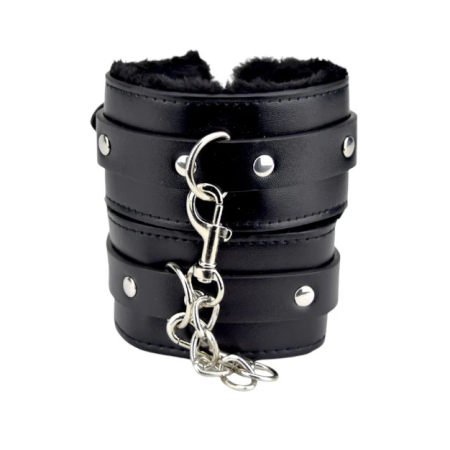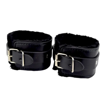Catuse erotice Bound to Please - Plush Wrist Cuffs, din piele cu puf pentru o purtare conforabila, Neagra